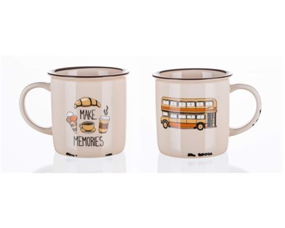 Hrnek TRAVEL 310 ml Bus je vyroben z keramiky, vhodný na horké i studené nápoje. Dodáván ve více designech, výška hrnku 8,5 cm, průměr horní 8,8 cm průměr dolní 7,5 cm. Hrnek lze používat do mikrovlnné trouby a mýt v myčce na nádobí. Díky vtipnému dekoru je i vhodným dárkem.