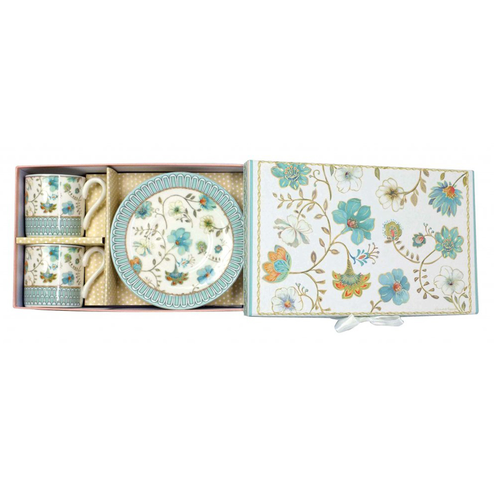 Porcelánové šálky na espresso s podšálky 2 ks - Modré květiny