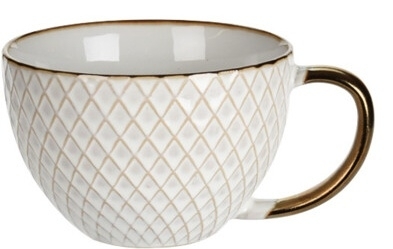 Krásný kameninový hrnek JUMBO s bílou glazurou a metalickým okrajem.Materiál: kameninaRozměry:hrnek 15x11,6x7,6 cmobjem hrníčku 460 mlhmotnost 346 g prečítať celé