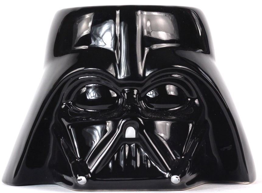 Černý keramický hrnek vyvydený ve tvaru masky Darth Vadera.