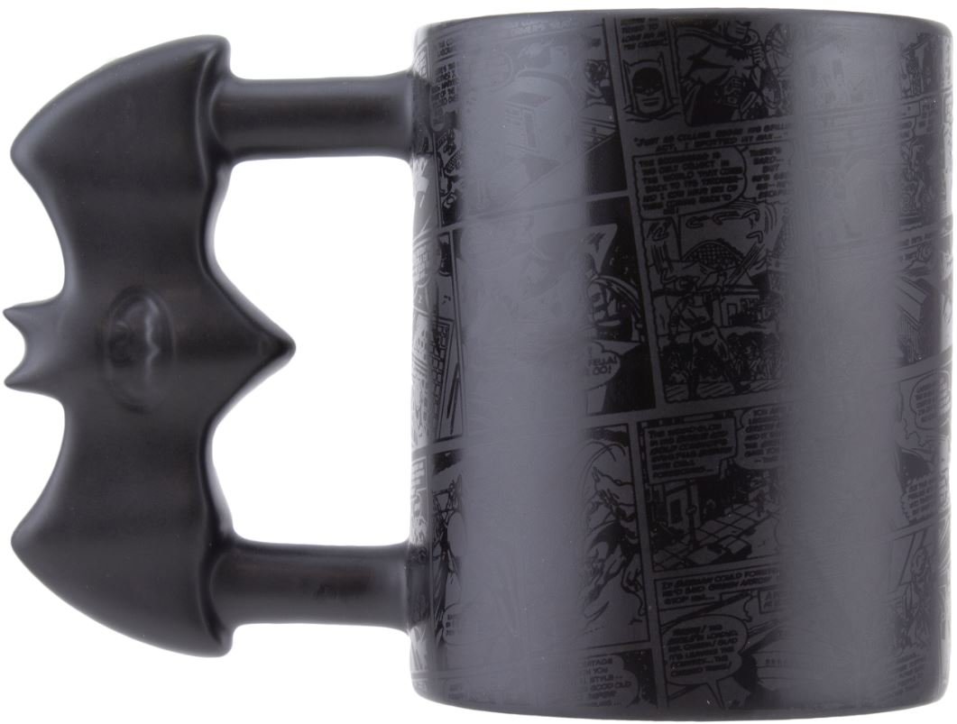 3D černý keramický hrnek s motivem Batarangu z filmu Batman od společnosti DC Comics.