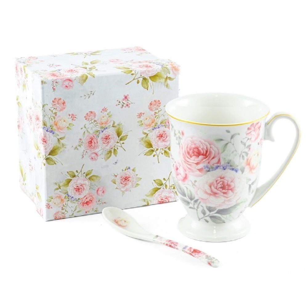 HOME ELEMENTS Hrnek 280 ml, se lžičkou, Růže