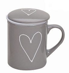 Milujete bylinkové čaje? Pořiďte si porcelánový hrníček se sítkem a  víčkem, užijte si pohodu u výborného šálku čaje. Krásný keramický hrnek s ručním motivem srdce, je elegantní  a okouzlí  Vás svou jednoduchosti.Výška hrnku bez víčka: 9 cmObjem: 300 ml prečítať celé