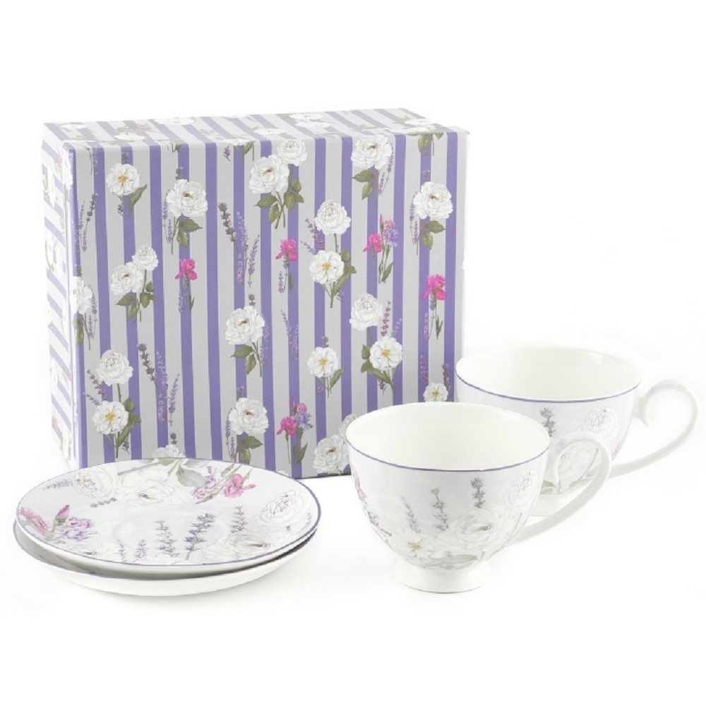 HOME ELEMENTS Šálek s podšálkem 2 x 250 ml, Levandule