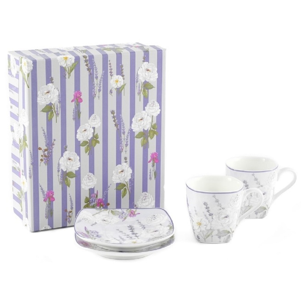 HOME ELEMENTS Šapo sada espresso 90 ml, dva šálky se lžičkami, Levandule
