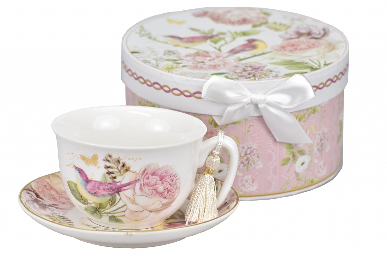 Porcelánový hrnek s podtalířkem Birds 300 ml v dárkové krabičce