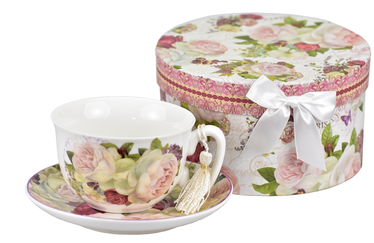 Porcelánový hrnek s podtalířkem Paeonia 300 ml v dárkové krabičce