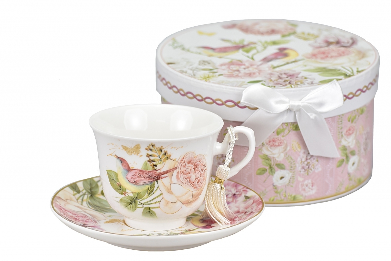 Porcelánový hrnek s podtalířkem Birds 200 ml v dárkové krabičce