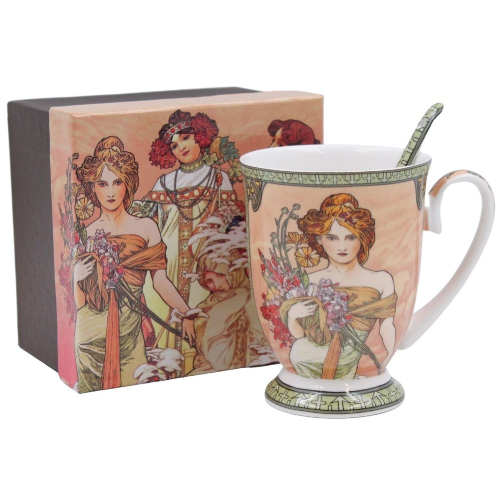 HOME ELEMENTS Hrnek 280 ml, se lžičkou, Mucha Jaro