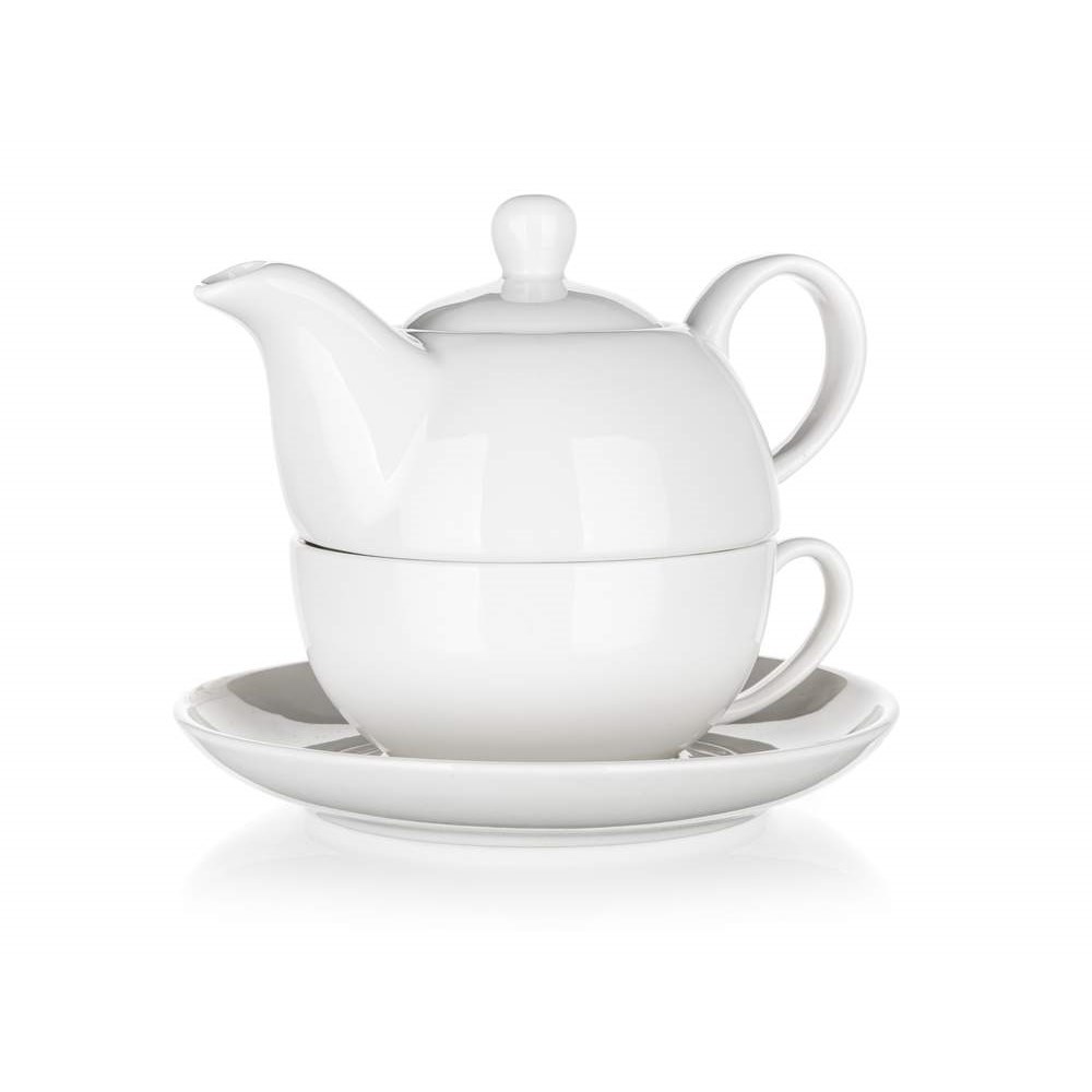 Čajová súprava obsahuje kvalitne spracovanú keramickú kanvicu s objemom 400 ml a čajový šálku s objemom 220 ml. Vďaka elegantnému bielemu glazúrovanému povrchu sa súprava stane ozdobou vašej kuchyne alebo obývačky a skvele poslúži pri každodennom používaní i slávnostných príležitostiach.