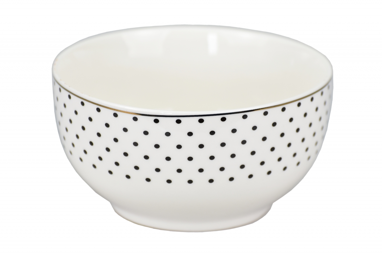 Porcelánová miska s puntíky a zlatým okrajem.Materiál: porcelánRozměry:objem 400 mlvýška 7 cmprůměr 12,8 cm prečítať celé