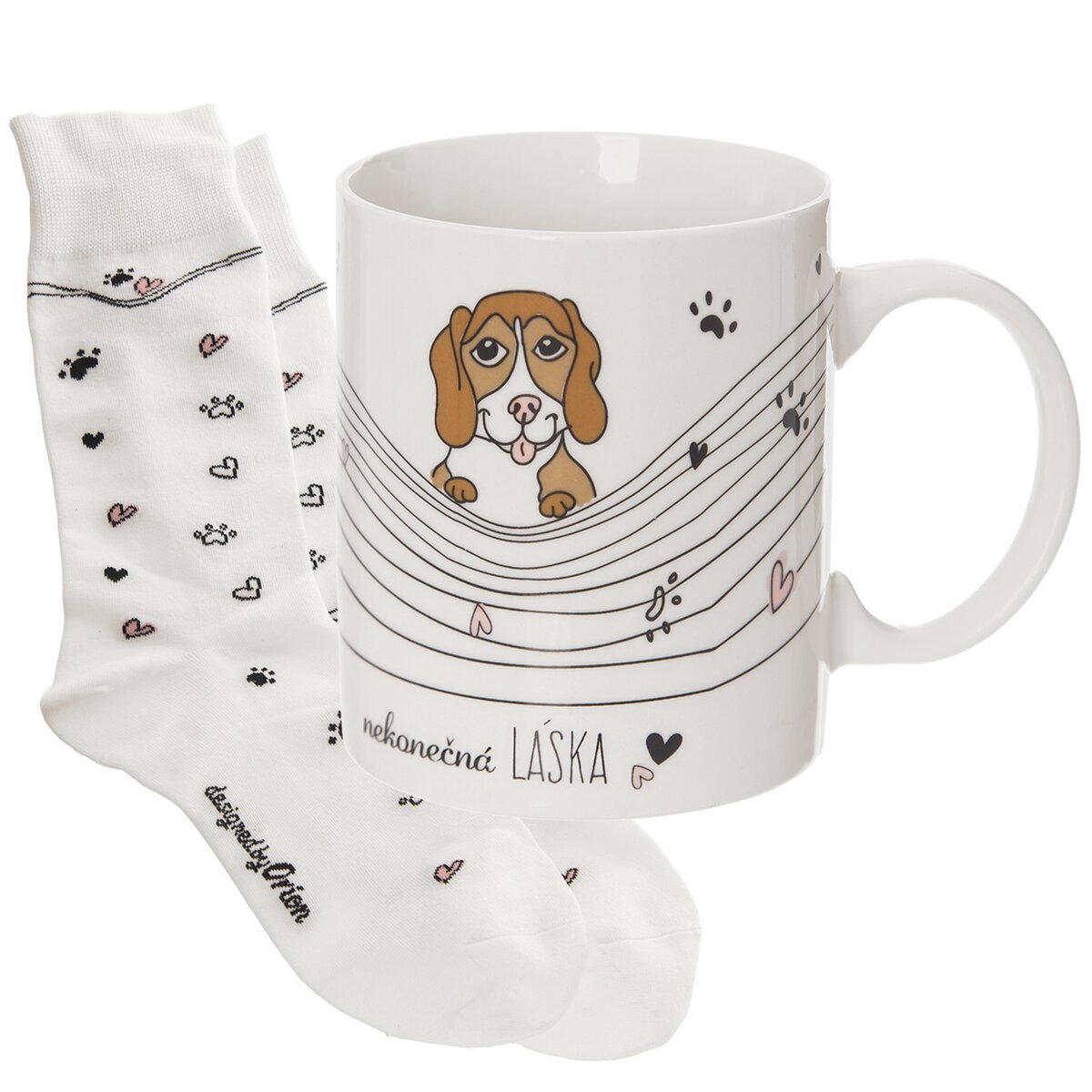 Hrnek s dekorem je doplněn párem ponožek. Udělá radost jako vtipný i praktický dárek. Ponožky zahřejí nohy při chladných dnech. Materiál: keramika, ponožky 70 % bavlna/27 % polyamid/3 % elastan (prát na 30 °C). Rozměry: hrnek 0,35 l, pr. 8 cm, v. 9,3 cm, ponožky velikost 42-45. Hrnek není vhodný do myčky, je vhodný do MVT. Vhodné pro děti od 3 let.