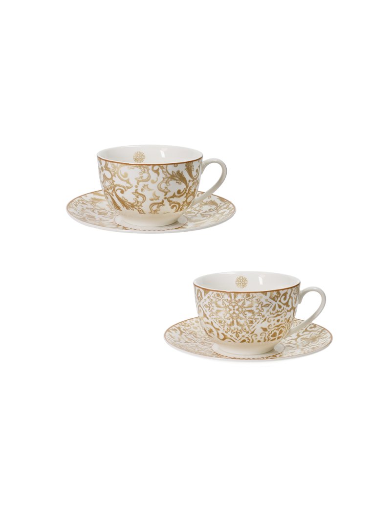 Sada 2 šálků s podšálky s geometrickými a květinovými dekoracemi