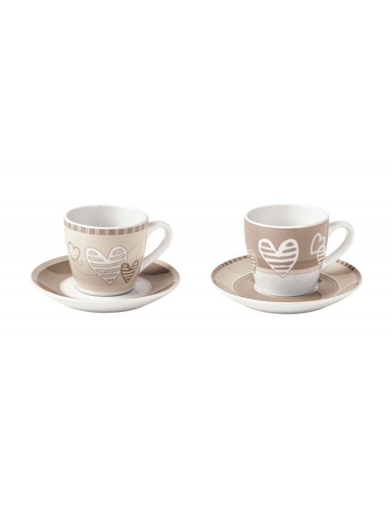 Sada 2 porcelánových šálků s podšálkami na kávu v bílé/béžové barvě s motivem srdce.