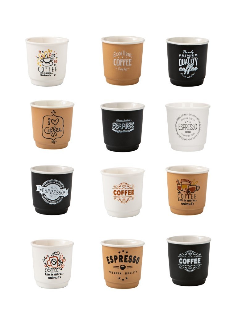 Pohárky na kávu s designovými nápisy.Příjemné odstíny, které se snoubí s novým jádrem z kostního porcelánu a jsou předurčeny k tomu, aby si na stole vydobyly hlavní roli. Tumbler na kávu v různých barvách a dekorech představuje ten nejlepší kompromis, jak co nejlépe začít den a sdílet chvíle...