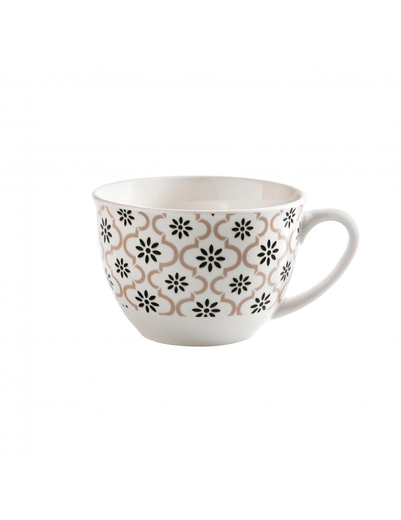 Velký hrnek / miska s uchem v bílé/černé barvě s květinovými tvary. Praktický a prostorný díky pohodlné