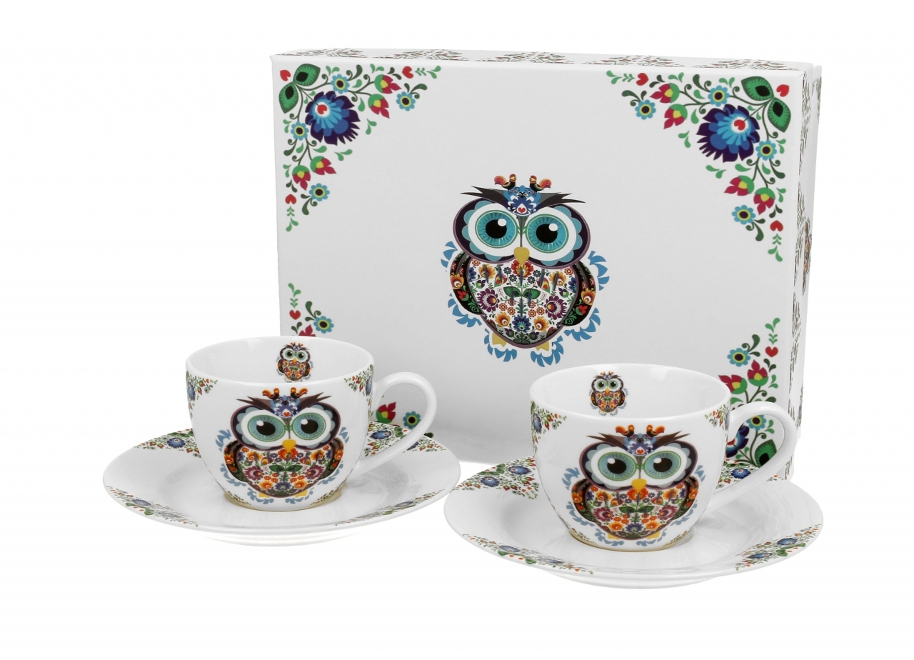 Porcelánový hrnek espresso s podtalířkem Owl Etno 90 ml, sada 2 ks v dárkovém boxu