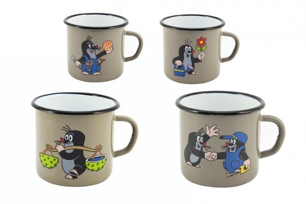 Hrnek Hrníček dekor Krtek s jedním uchem smalt 8x8 cm mix druhů, 0,37 l, šedý