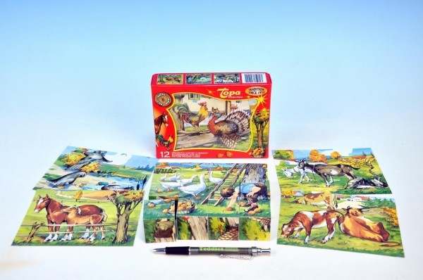 Kostky kubus Zvířátka Statek dřevo 12ks v krabičce 16,5x12,5x4cm