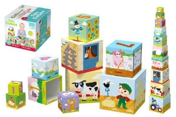 Kocky kubus Na farme 10ks v krabici 15x15cm 1+