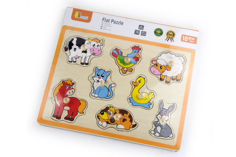 Dřevěná vkládačka se zvířátky. Rozměry dřevěné desky cca 30 x 22,5 cm. Rozměry balení cca 30 x 27 x 1 cm. Věk 18m+ prečítať celé