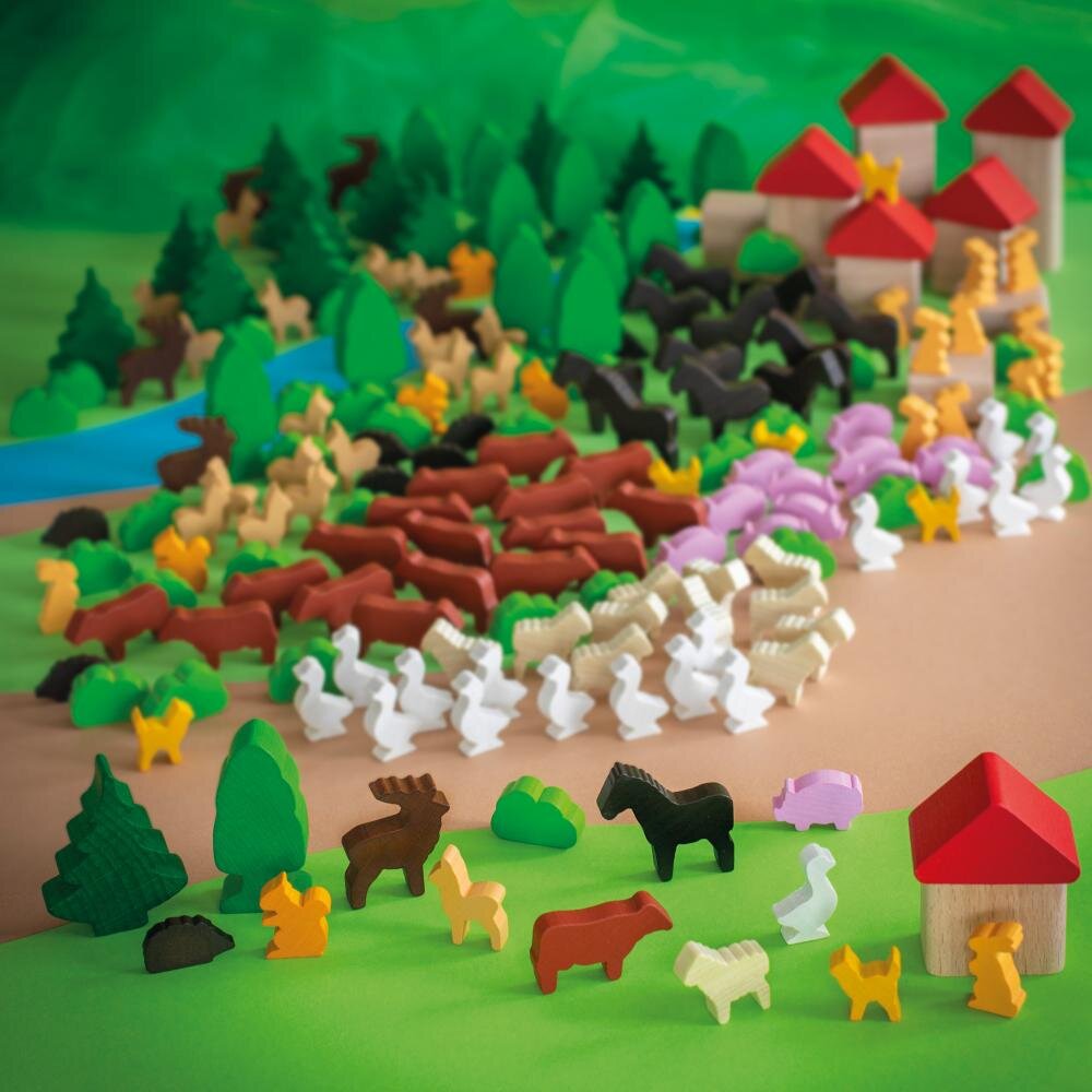 Drewniane figurki zwierząt drzew domów 200 elementów Erzi