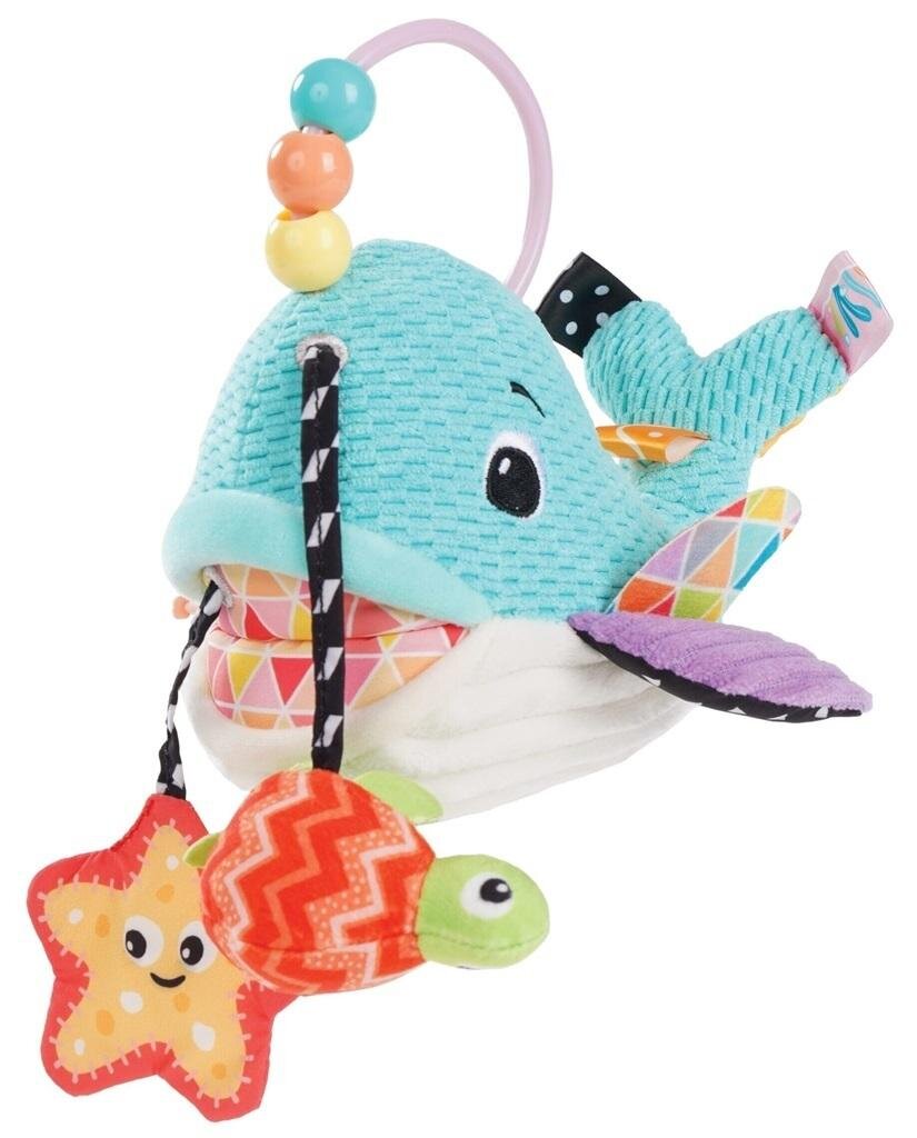 Koleżka wprost z morskich głębin zabawi sensorycznie i to na różne sposoby! Wieloryb wyposażony został w tasiemkę do przeciągania z doczepionymi do niej dwoma kształtami: szeleszczącą rozgwiazdą i kolorowym żółwiem. Ciałko wieloryba zostało uszyte z materiałów o zróżnicowanych fakturach i...