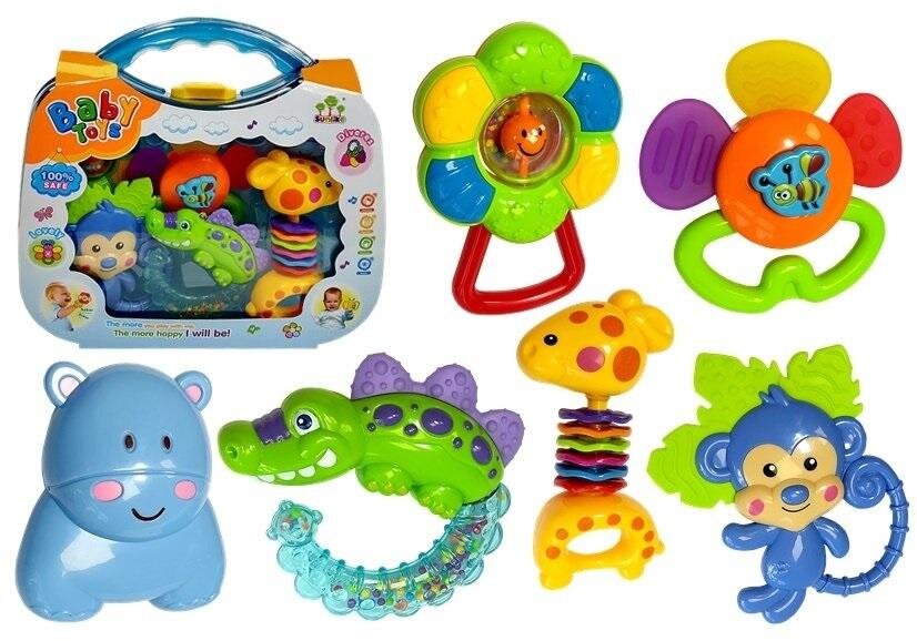 Zestaw Gryzaków Grzechotek w Walizce dla Niemowląt Małpka Żyrafa Grzechotki są to jedne z najlepszych nauczycieli dla małych odkrywców. Rozwija jedne z podstawowych umiejętności takich jak: rozpoznawanie dźwięków i kształtów, koordynacja ręka - oko, poprawi zmysł wzroku i słuchu. Zabawki...