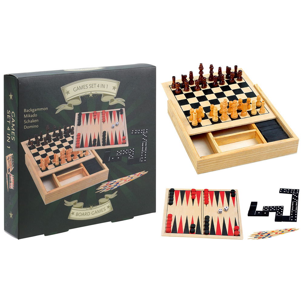 Společenské, cestovní hry 4 v 1 - sada ve dřevě