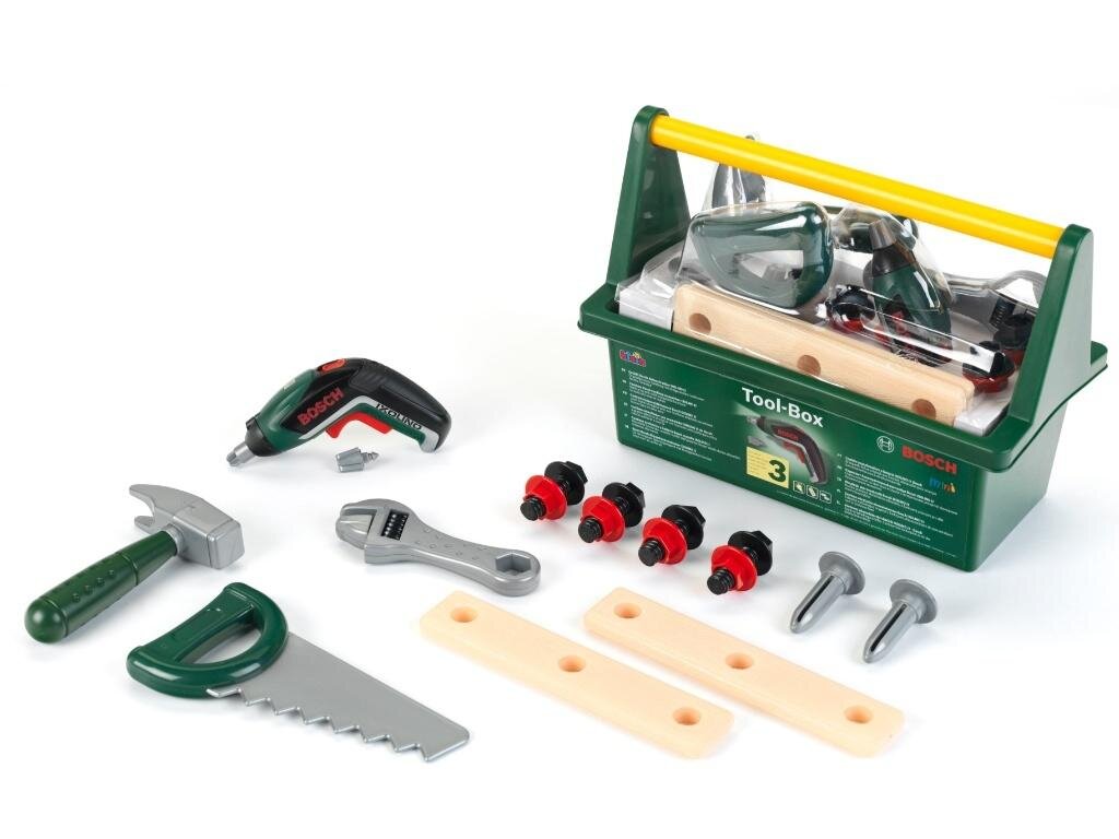 KL 8345 Skrzynka narzędziowa z wkrętarką Ixolino IISkrzynka narzędziowa z wkrętarką marki Klein pochodzi z serii zabawek Bosch mini powstałej na licencji firmy Bosch, dlatego też narzędzia wchodzące w jej skład są wiernymi kopiami faktycznie istniejących narzędzi tej marki. Zestaw zapakowany jest...