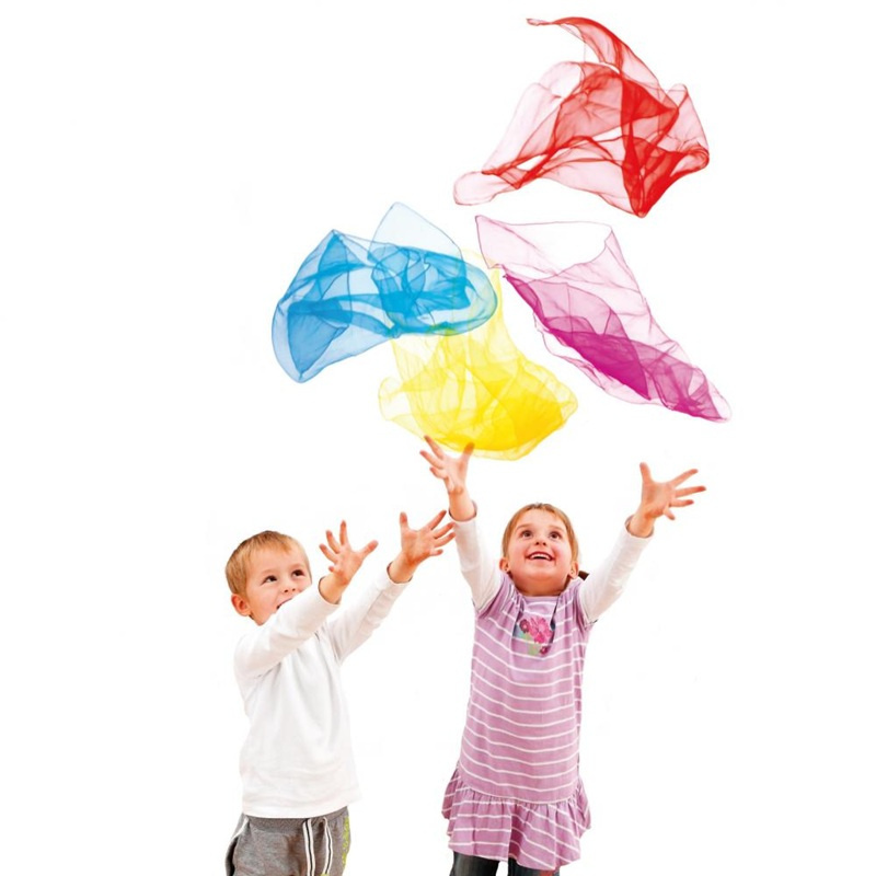 Chusty są naprawdę wszechstronne: można je przebierać, żonglować, zawiązywać oczy, dekorować, uczyć się kolorów i grać w łapanie.