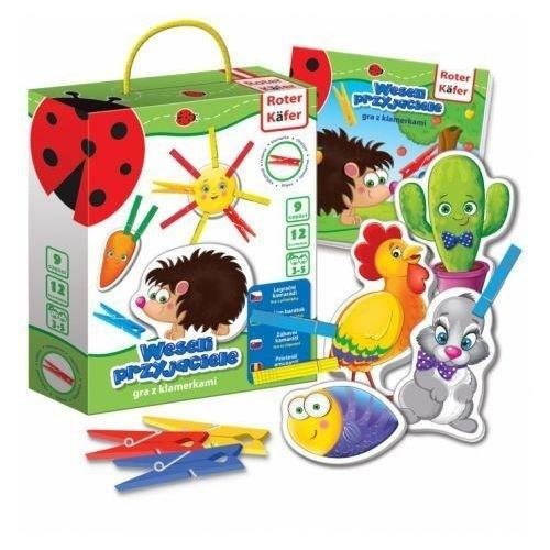 Gra z klamerkami zawiera figurki roślin i zwierząt, którym zabrakło pewnych elementów. Zamiast nich dziecko musi przymocować klamerki. Ekscytująca gra z klamerkami będzie rozwijała logikę myślenia, twórczość. Dzięki naszej grze dziecko będzie miało możliwość ćwiczenia motoryki rączek.Zestaw: 9...