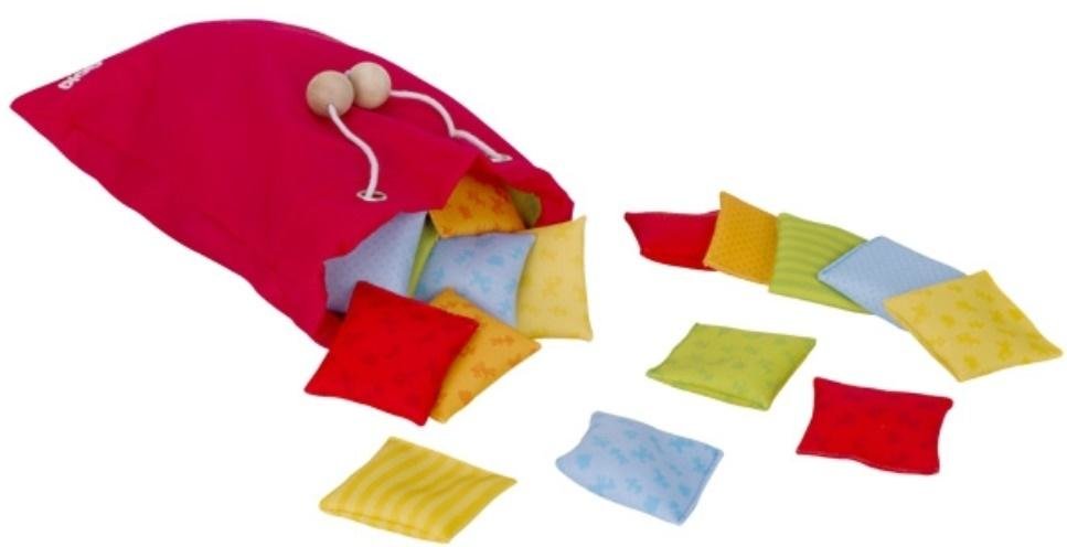 Kolejna ciekawa propozycja gry w memo od Goki. Tym razem używamy zmysłu dotyku i czucia. Chowamy poduszeczki do worka i wkładając rękę do środka naszym zadaniem jest wyciągnięcie 2 poduszeczek o tym samym wypełnieniu. Po wyciągnięciu poduszeczek łatwo zweryfikować ich dopasowanie ? powinny mieć...