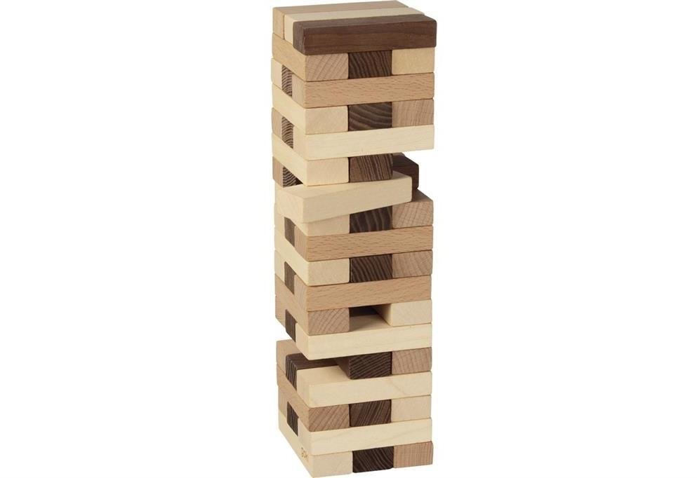 Budowanie chwiejącej się wieży to jedna z najbardziej wciągających gier zręcznościowych. Należy na przemian wyjmować klocki z konstrukcji i układać na jej szczycie. Przegrywa ten, kto zburzy wieżę.Wymiary wieży: 25,5 x 7,5 cm Zestaw zawiera 51 drewnianych klocków w kolorze naturalnym