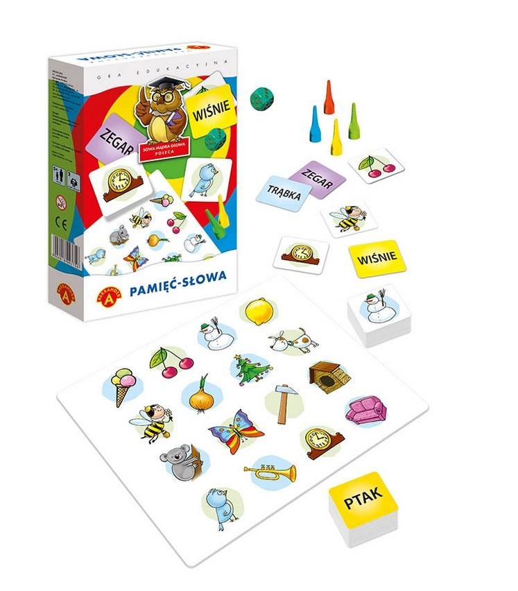 W grze" Pamięć - słowa" wygrywa ten, kto najlepiej zapamięta położenie odpowiednich par, odkrytych na chwilę, spośród wszystkich tabliczek leżących na stole rewersem do góry.Gra skierowna jednocześnie do dzieci i dorosłych ,jest świetnym treningiem pamięci i spostrzegawczości. Gracze najmłodsi przy okazji ćwiczą kojarzenie obrazu ze słowem. Gra ma również drugi rozbudowany wariant z dodatkowymi rekwizytami, wzbogacająymi atrakcyjność i emocje podczas zabawy.