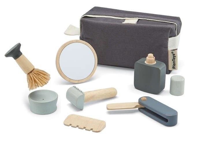 Wszystkie elementy można zapakować w dołączoną kosmetyczkę. Dzięki tym akcesoriom każdy mały chłopiec może w bezpieczny sposób naśladować codzienną toaletę taty, rozwijając tym samym umiejętności społeczne, kreatywność oraz rozwój poznawczy.