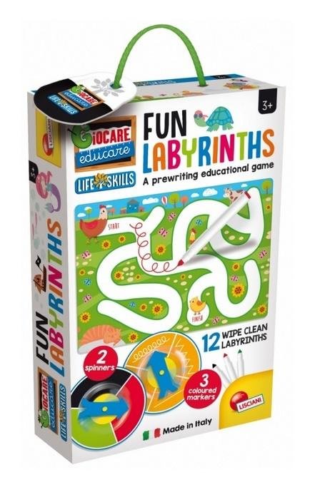 Wyjątkowa gra z 12 labiryntami do pisania i zmazywania, które pomagają wykształcić nawyk pierwszego pisania. Obróć spinner i uzupełnij labirynty używając jednego z trzech pisaków i jednego z wzorów. Dzięki tej grze dziecko rozwija umiejętność rozwiązywania problemów tj. jedną z Life Skills, wyodrębnioną przez WHO.