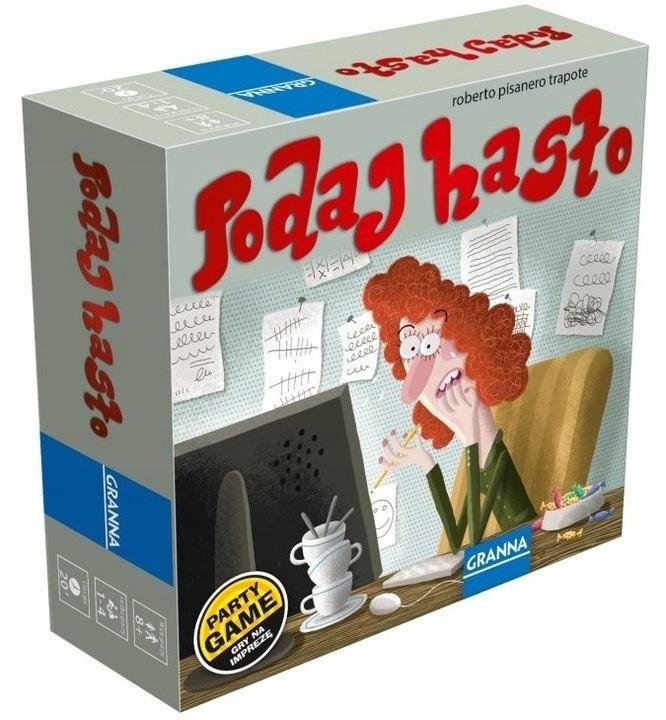 Podaj hasło to szybka gra imprezowa.Gracze dzielą się na dwie drużyny. Zadaniem obu zespołów jest podanie jak największej liczby haseł, które pasują do danej kategorii oraz zawierają wskazaną literę. Wszystko dzieje się pod presją czasu, który odmierza klepsydra. Podaj hasło to szalona gra...