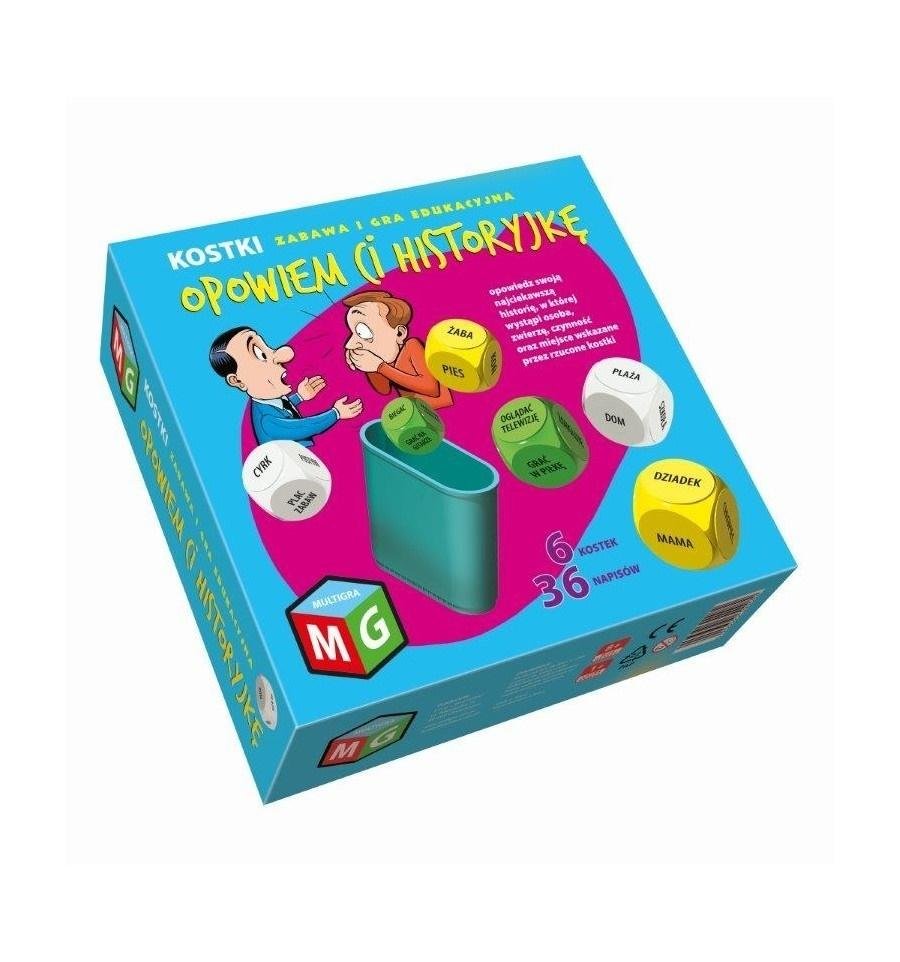 Kostki z wyrazami OPOWIEM CI HISTORYJKĘ to prosta ale bardzo ciekawa wymagająca kreatywnego myślenia zabawa i gra edukacyjna. Na 6 kostkach znajdują się wyrazy określające osobę, zwierzę, czynność i miejsce. Zabawa polega na tym, by po rzucie kostkami opowiedzieć historyjkę, która będzie...