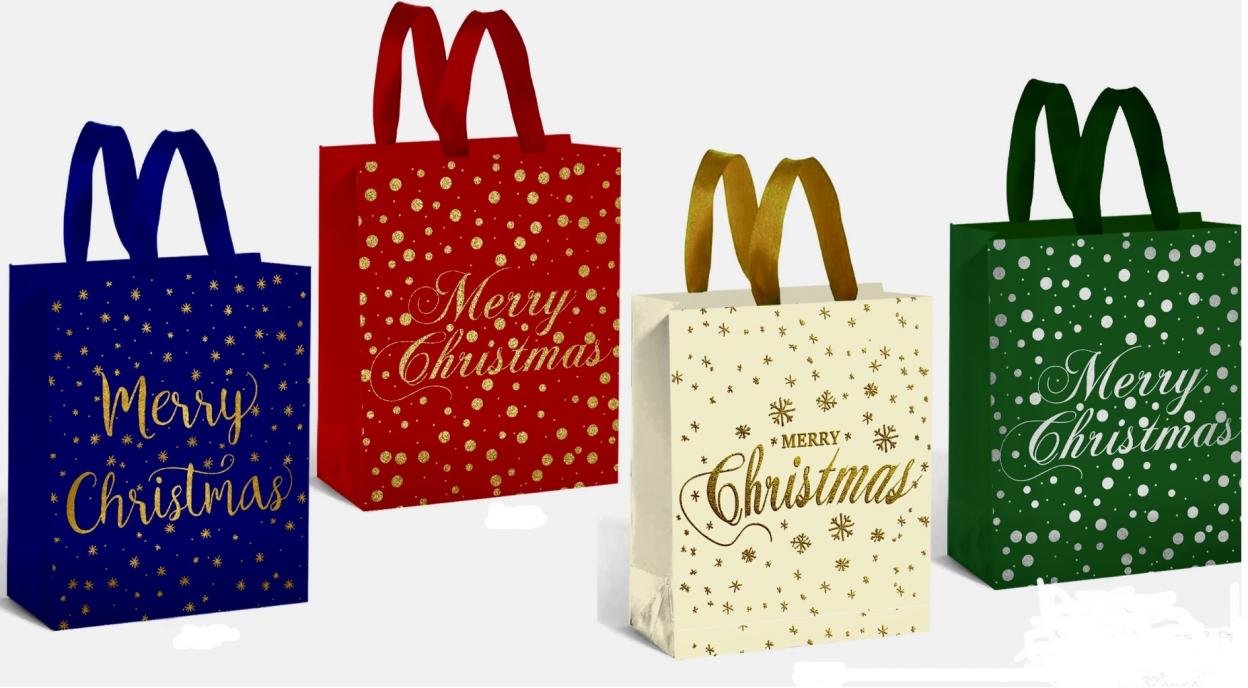 Torebka świąteczna KR 2648 M o wymiarach 263212.5 cm z brokatem. Mix wzorów, towar wysyłany losowo. prečítať celé