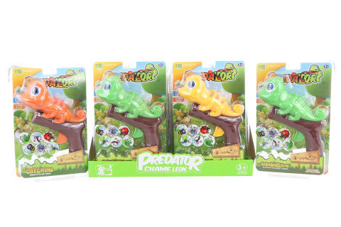 Chameleon po zmačknutí spouště vystřelí jazyk a musí zachytit letící žetonek, který se na jazyk přichytí díky magnetu. Tato hra je o postřehu a načasování. Zvládneš pochytat všechen hmyz? Rozměr balení cca 18 x 25,5 x 7,5 cm. Věk 3+ prečítať celé
