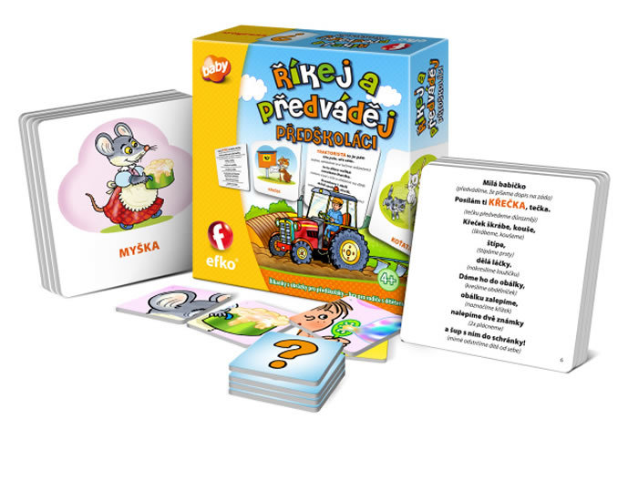 Hledáte vhodný způsob, jak intenzivně prožít společné chvíle s Vaším předškolákem? Říkej a předváděj Vám nabízí 12 zajímavých veršovánek spolu s praktickou nápovědou, jak s dítětem napodobovat a předvádět činnosti pomocí mimiky a gest. Kartičky s částmi obrázků využijte i pro procvičování pozornosti a smyslu pro detail. Vyrobeno v České republice.