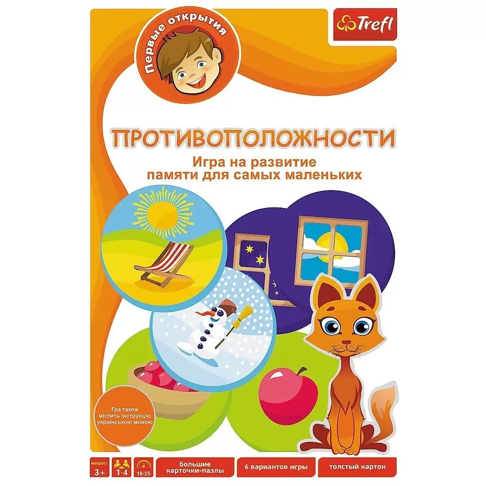 Przeciwieństwa UA TREFL.Gra edukacyjna Trefl Przeciwieństwa to zestaw kolorowych kafelków opatrzonych pięknymi, przejrzystymi grafikami. Znajdują się na nich przeciwieństwa, a zadaniem dziecka jest je odnaleźć i prawidłowo dopasować. Zabawa rozwija pamięć i koncentrację, pozwala poznać nowe słowa...