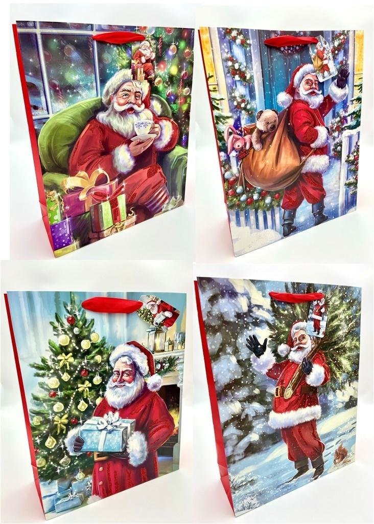 Mix wzorów, towar wysyłany losowo.Torebka Prezentowa Świąteczna motyw -Mikołaj z dodatkami Brokatu 210g Papier, WstążkaWymiar 42x32x11,5 cm prečítať celé