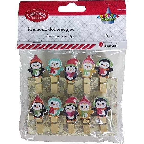 Klamerki drewniane z dekorem naturalne dekor pingwiny w czapkach 5 wzorów 10szt. prečítať celé