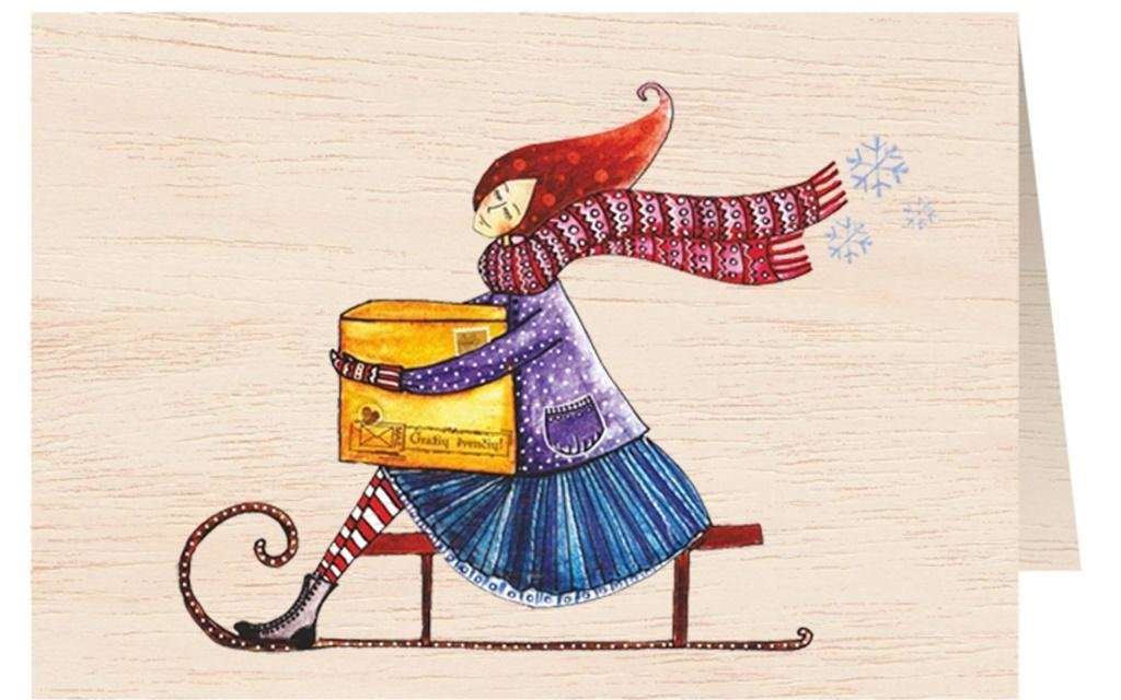 Karnet drewniany C6 + koperta Święta Kobieta Sanki