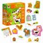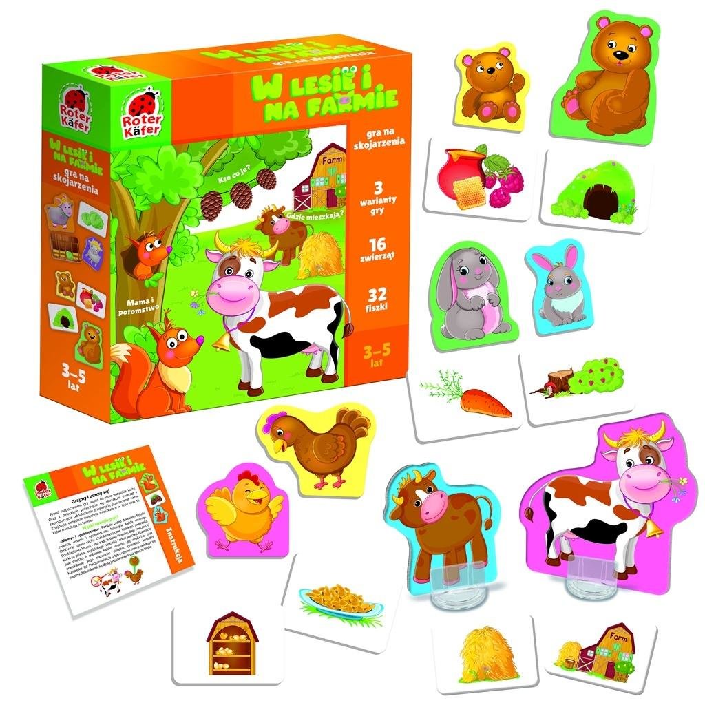 W lesie i na farmie żyją różne zwierzęta. Poznajmy je razem! W zestawie znajdują się kartonowe karty z dzikimi i domowymi zwierzętami, a także karty z ich ulubionymi przysmakami. Dowiedz się, kto co je i połącz karty. Króliczek uwielbia marchewki, a krowa siano. Kto jeszcze?