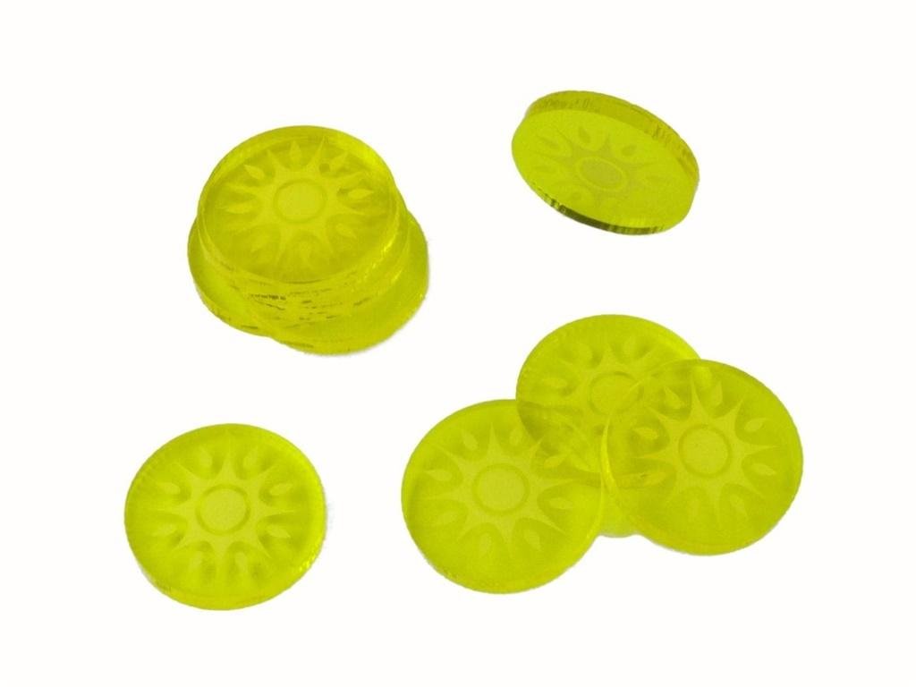 Zestaw 10 żetonów o średnicy 20 mm, wykonanych ze szkła akrylowego o grubości 3 mm. Znaczniki są grawerowane - grafika nigdy się nie zetrze. Żetony będą użyteczne w grach bitewnych, RPGach, grach Print & Play, w prototypach gier planszowych, jako zamienniki elementów oraz przy wprowadzaniu...