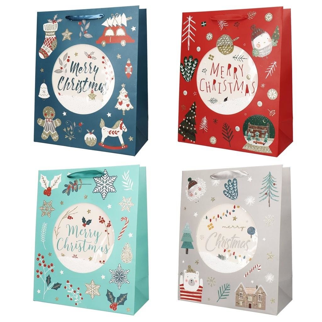 Mix wzorów, towar wysyłany losowo.Torba prezentowa 18x23x10cm / wykończenie brokatowe + okienko ze śniegiem prečítať celé