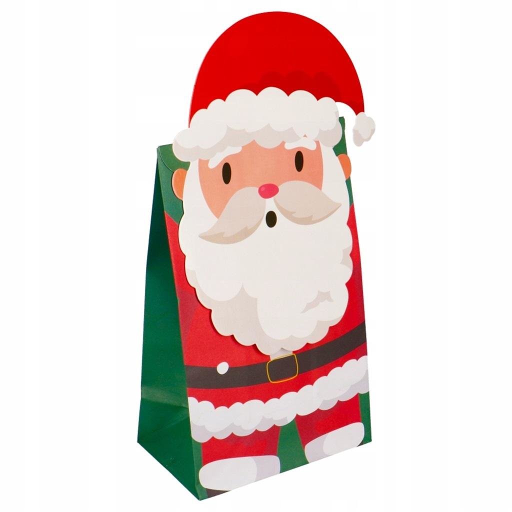 Torebki Mikołaj na prezent 2 sztuki:wykonane z papieru,zamykane pokrywką w kształcie głowy świątecznej postaci,pojemne idealne do różnych prezentów,świetnie sprawdzą się do prezentów mikołajkowych,idealne na słodycze i inne drobiazgi,2 sztuki w zestawie,wymiar torebki: 13 x 27 cm.